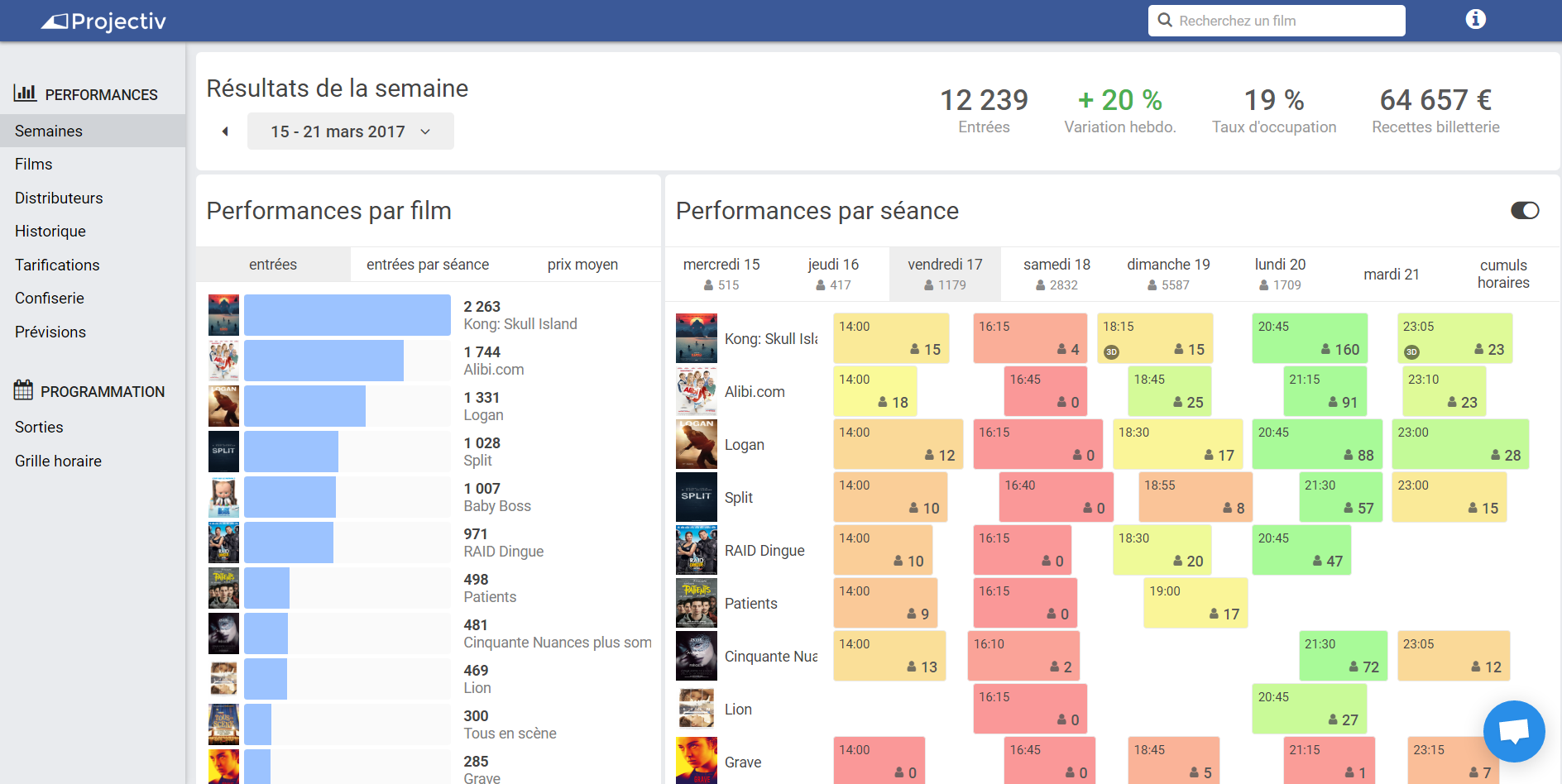 Projectiv a été développé pour résoudre ce problème en quelques clics : un algorithme construit la grille de programmation optimale, qui maximise le chiffre d'affaires du cinéma grâce à des prévisions d'affluence.