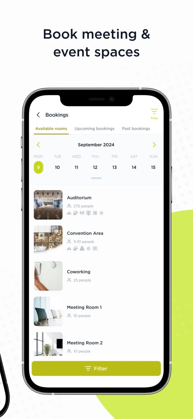 -un système de réservation complet pour organiser un événement au sein du hub : transport, navettes, réservation de salles et de matériel, réservation et réglement des repas au restaurant etc. -le calendrier des évènements organisés par le hub, et la possibilité de s’y inscrire. -un microphone permettant aux participants d'une séance de questions-réponses dans l’auditorium d'utiliser directement leur smartphone comme microphone personnel. La voix est ensuite diffusée automatiquement dans tout l’auditorium. -des fonctionnalités de traduction en temps réel des événements et conférences par IA. -des fonctionnalités domotiques permettant de contrôler à distance l’ouverture des portes, ou encore l’éclairage du Hub via l’app.