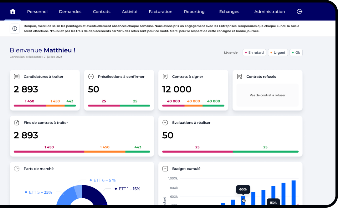 Un logiciel métier complet permettant de gérer la totalité d’un processus d’intérim
