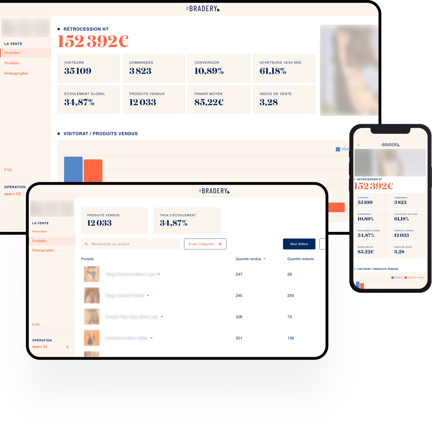 Pour réduire ces stocks, The Bradery propose des ventes privées de marques triées sur le volet. Ces ventes sont disponibles à la fois sur le